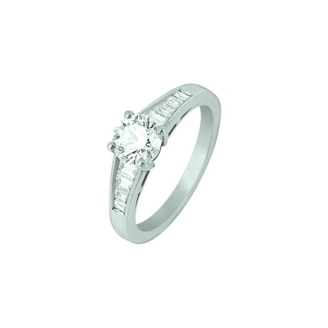 Bague Ph.Tisseront en or blanc et diamants taille baguette, taille 55