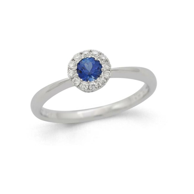 Bague Ph.Tisseront en or blanc, diamants taille ovale et saphir bleu, taille 52