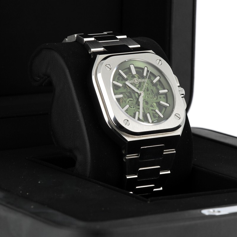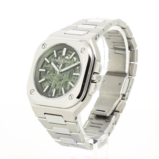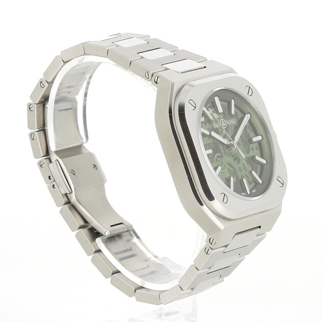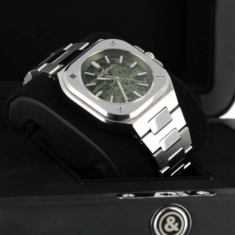 La Bell & Ross BR05A-GN-SKST-SST est une montre automatique au design urbain et contemporain, dotée d’un boîtier acier de 40 mm et d’un cadran squeletté vert laissant superbement apparaître son mouvement. Son bracelet intégré en acier et son étanchéité 100 m en font une pièce exclusive, moderne et parfaitement adaptée à un usage quotidien.