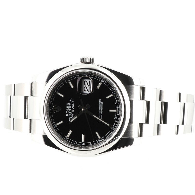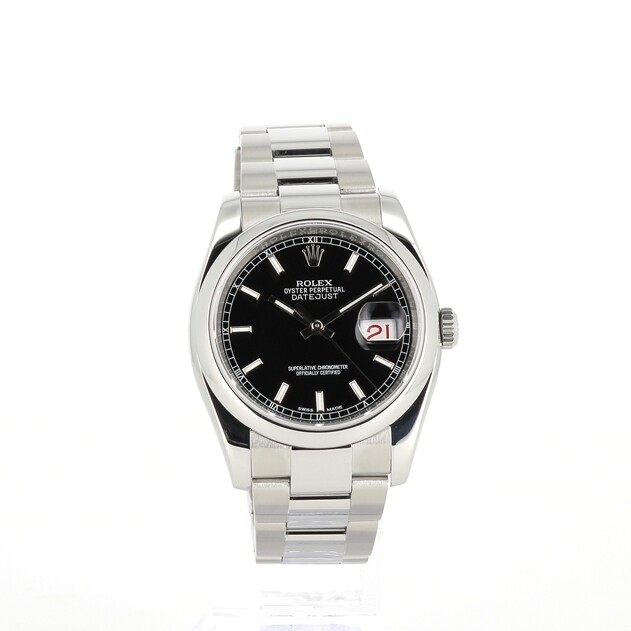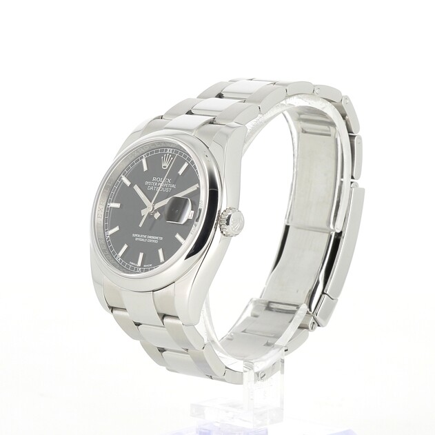 La Rolex Datejust 116200 (acier Oystersteel, 36 mm) est équipée du calibre automatique 3135, certifié COSC, avec 48 h de réserve de marche, date à saut instantané et changement rapide. Elle possède un boîtier Oyster étanche à 100 m, une lunette lisse en acier, un verre saphir avec Cyclope et un bracelet Oyster à maillons pleins avec fermoir Oysterclasp.