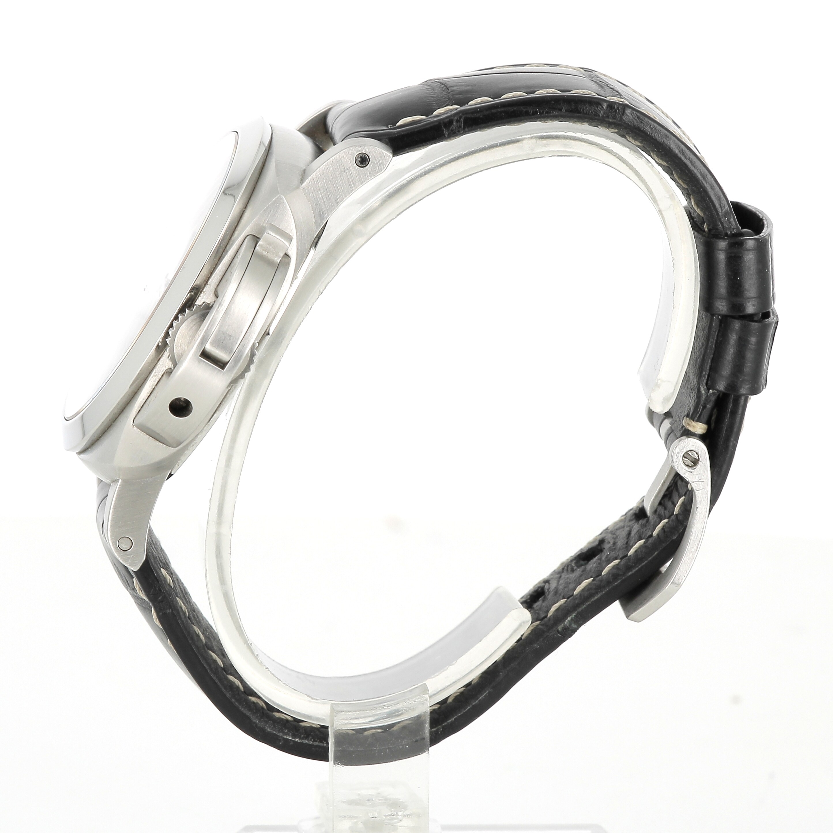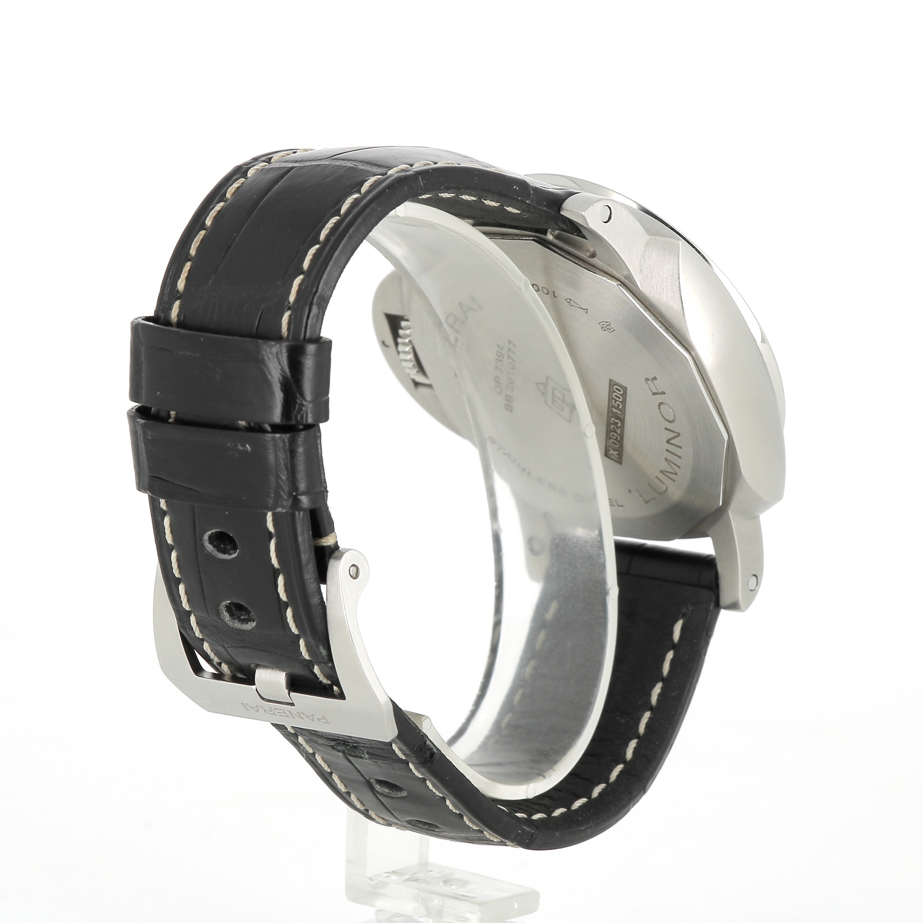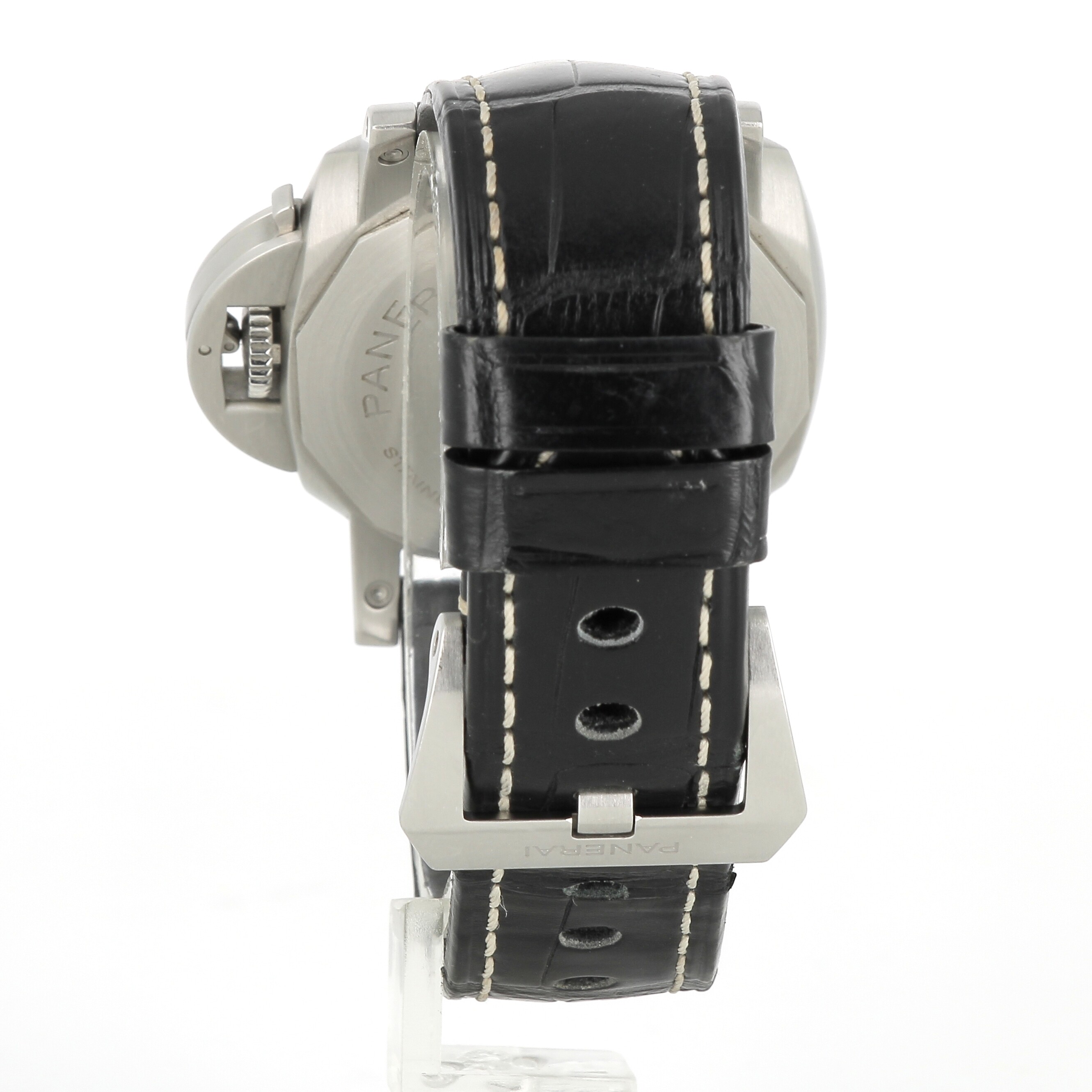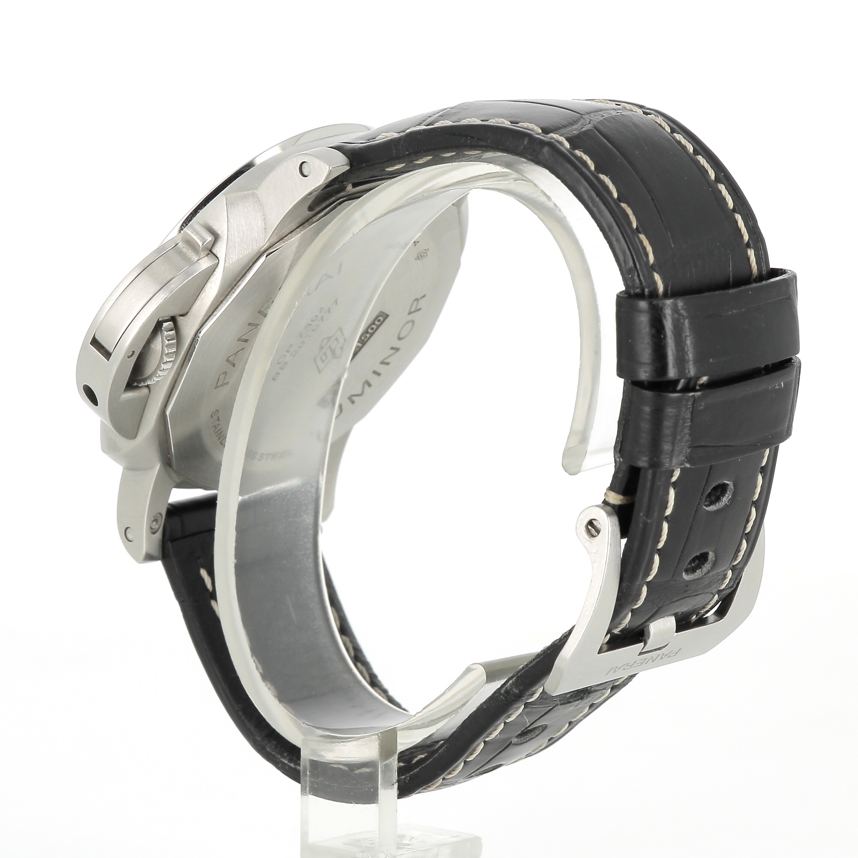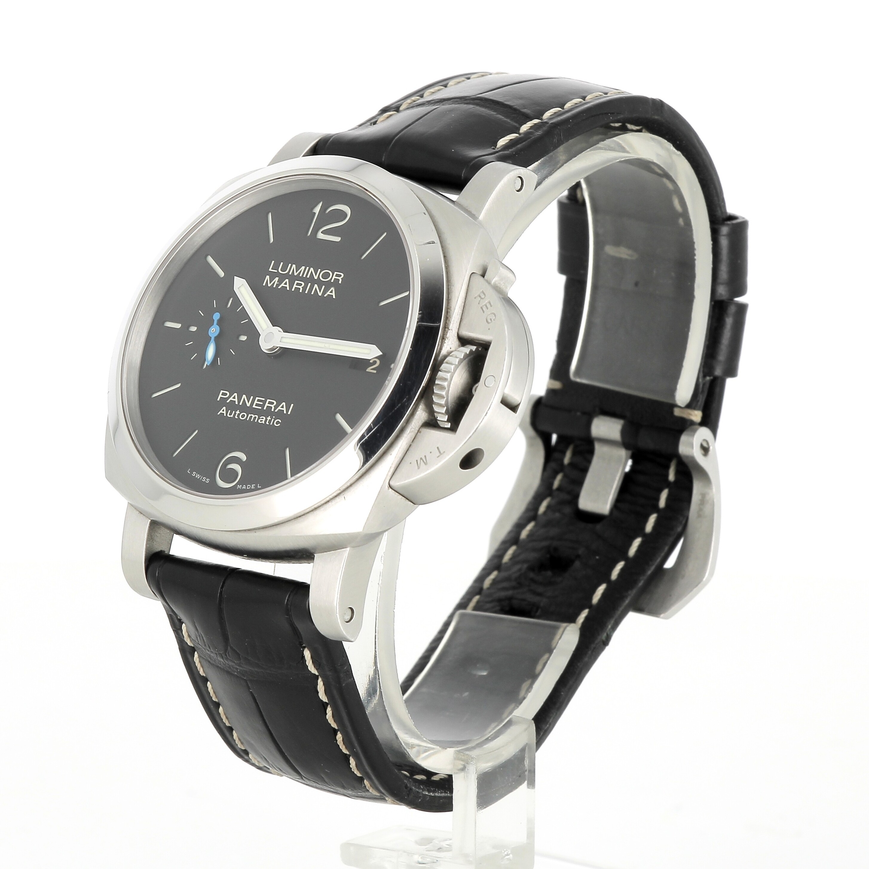 La Luminor Marina a été le premier grand succès de la marque Panerai. Dans les années 90, après des décennies de créations produites pour la Marine italienne et couvertes par le secret militaire, la Luminor avec compteur de la petite seconde à 9 heures a été l'un des modèles qui ont aidé la marque Panerai à se faire connaître dans le monde. Ses montres sont depuis devenues des icônes de l'horlogerie sportive de luxe contemporaine. Le cadran sandwich de couleur noire atteste du style Panerai, qui s’exprime à travers les grands chiffres aux points cardinaux, les index bâtons, un compteur de petite seconde avec aiguille bleue à 9 heures et un guichet dateur à 3 heures.