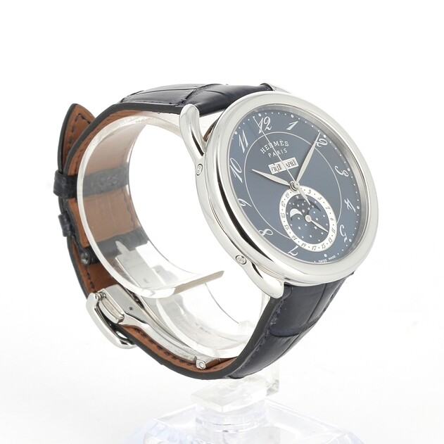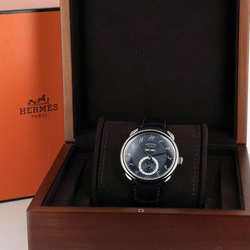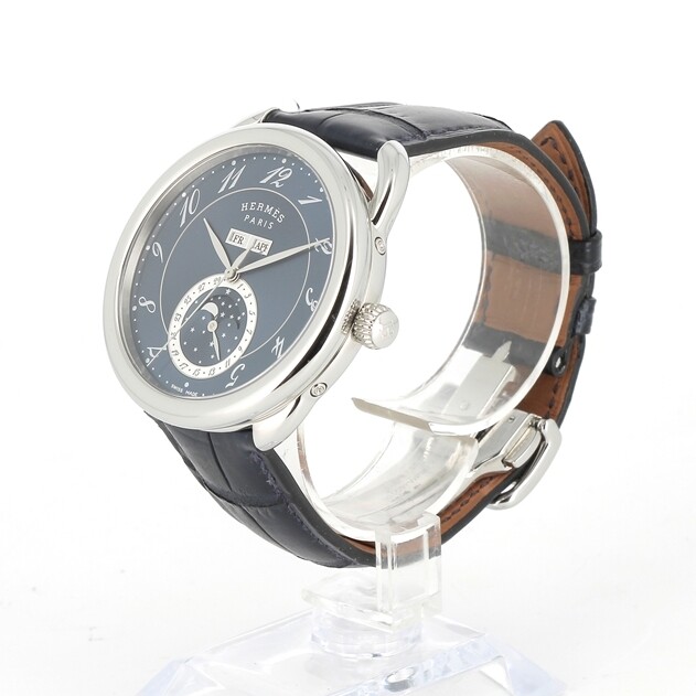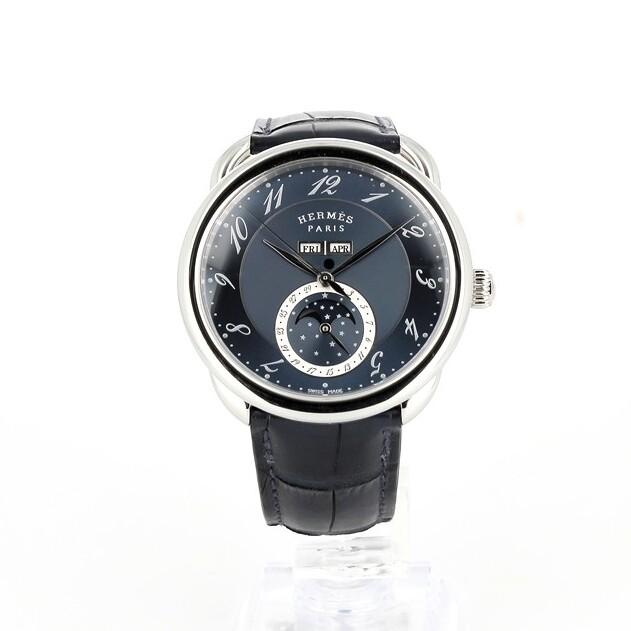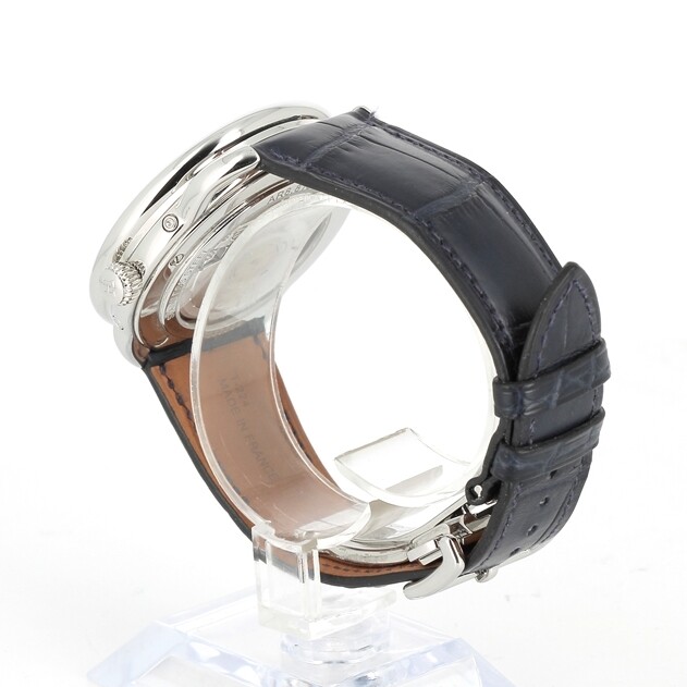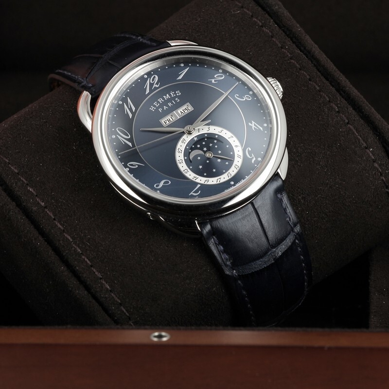 La Hermès Grande Lune est une montre raffinée qui capture l'élégance de l'horlogerie classique. Dotée d'un cadran opalin avec des aiguilles délicates, elle se distingue par son affichage de phase de lune, un détail à la fois fonctionnel et esthétique. Conçue pour les amateurs de montres sophistiquées, cette pièce allie précision et style, avec un boîtier en acier inoxydable et un design intemporel. Un choix parfait pour ceux qui recherchent une montre à la fois élégante et empreinte de subtilité