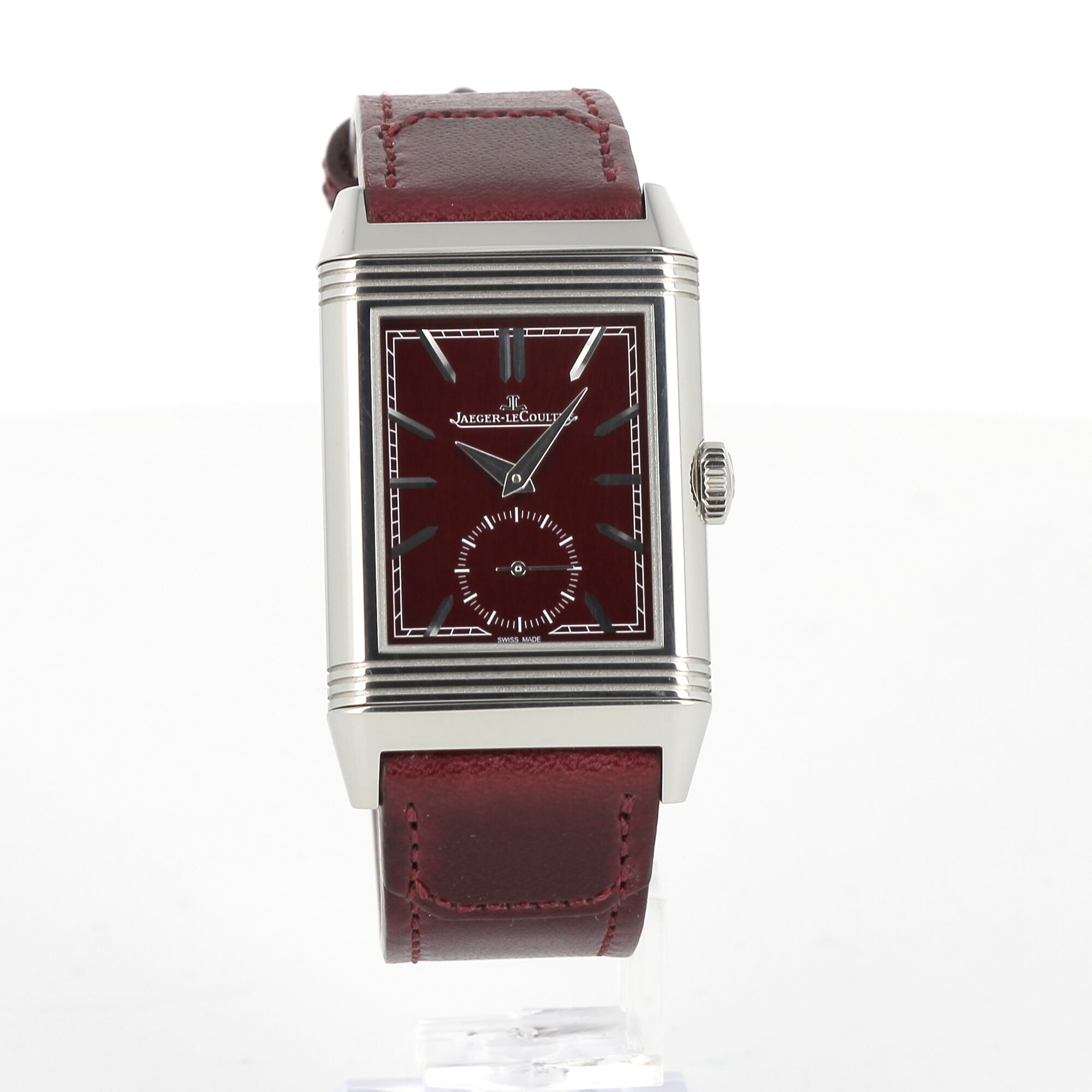La Reverso Tribute incarne l’élégance Art Déco de la Reverso, relevée par un cadran bordeaux audacieux, un boîtier fin et réversible, et un mouvement manuel raffiné. Une pièce rare, raffinée et pleine de caractère.