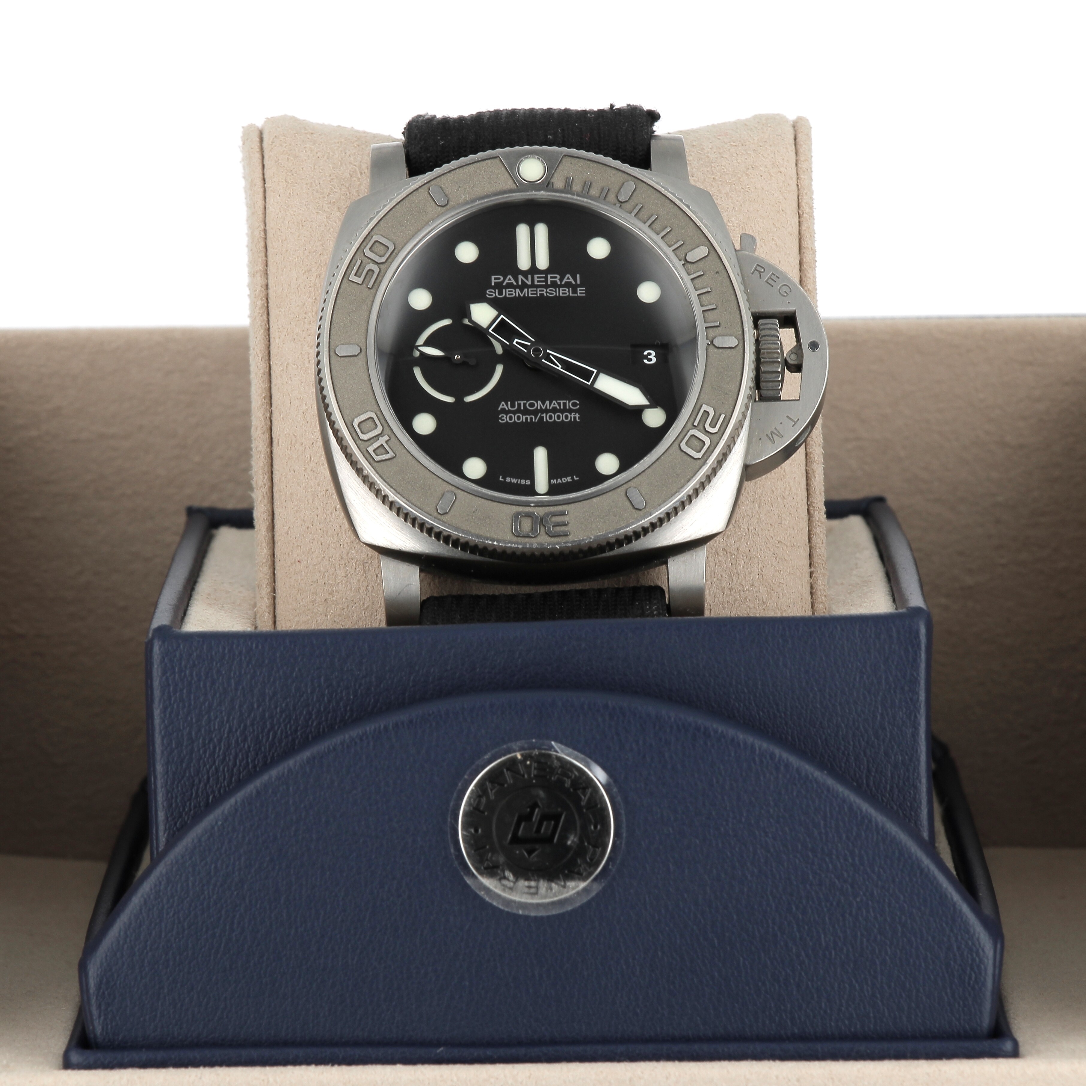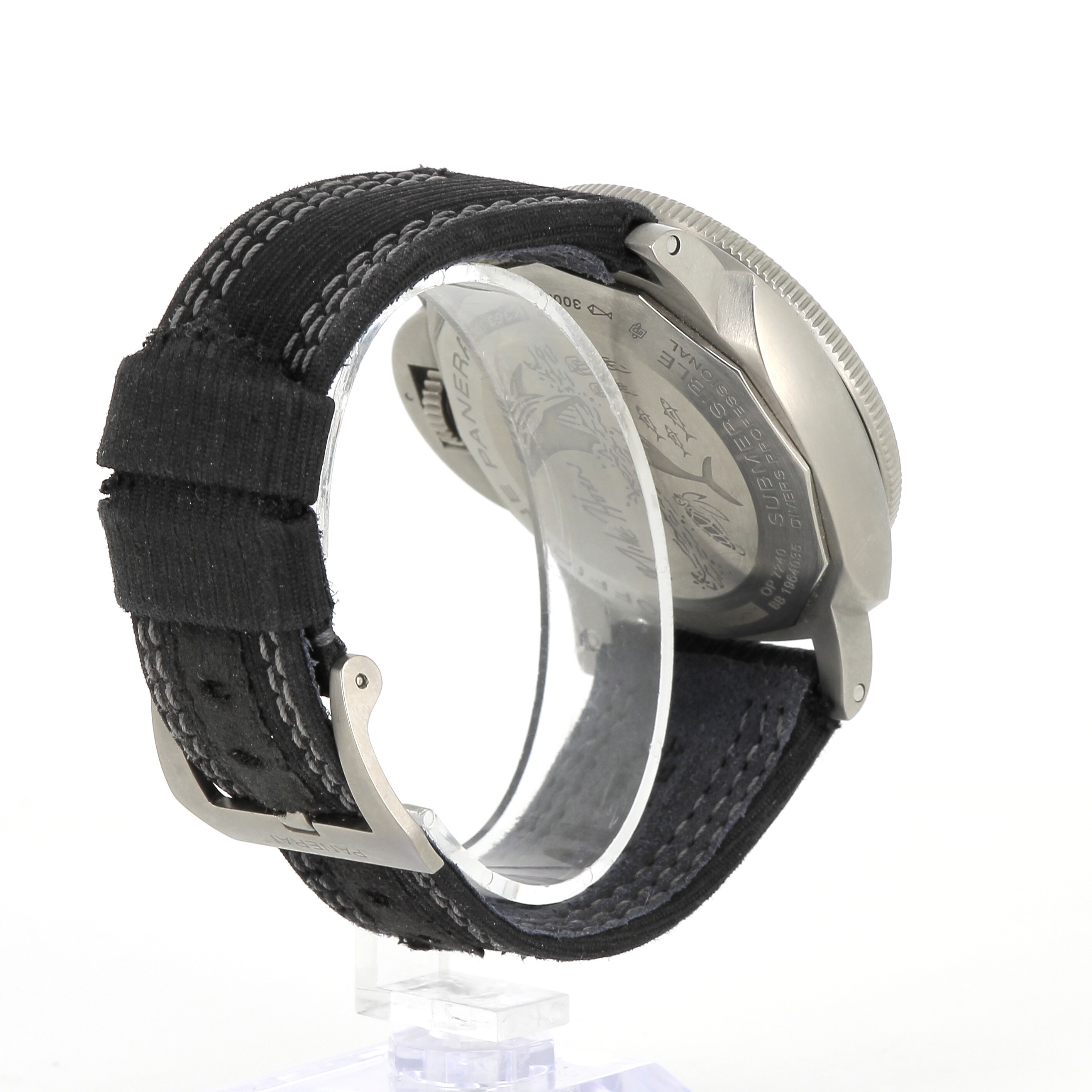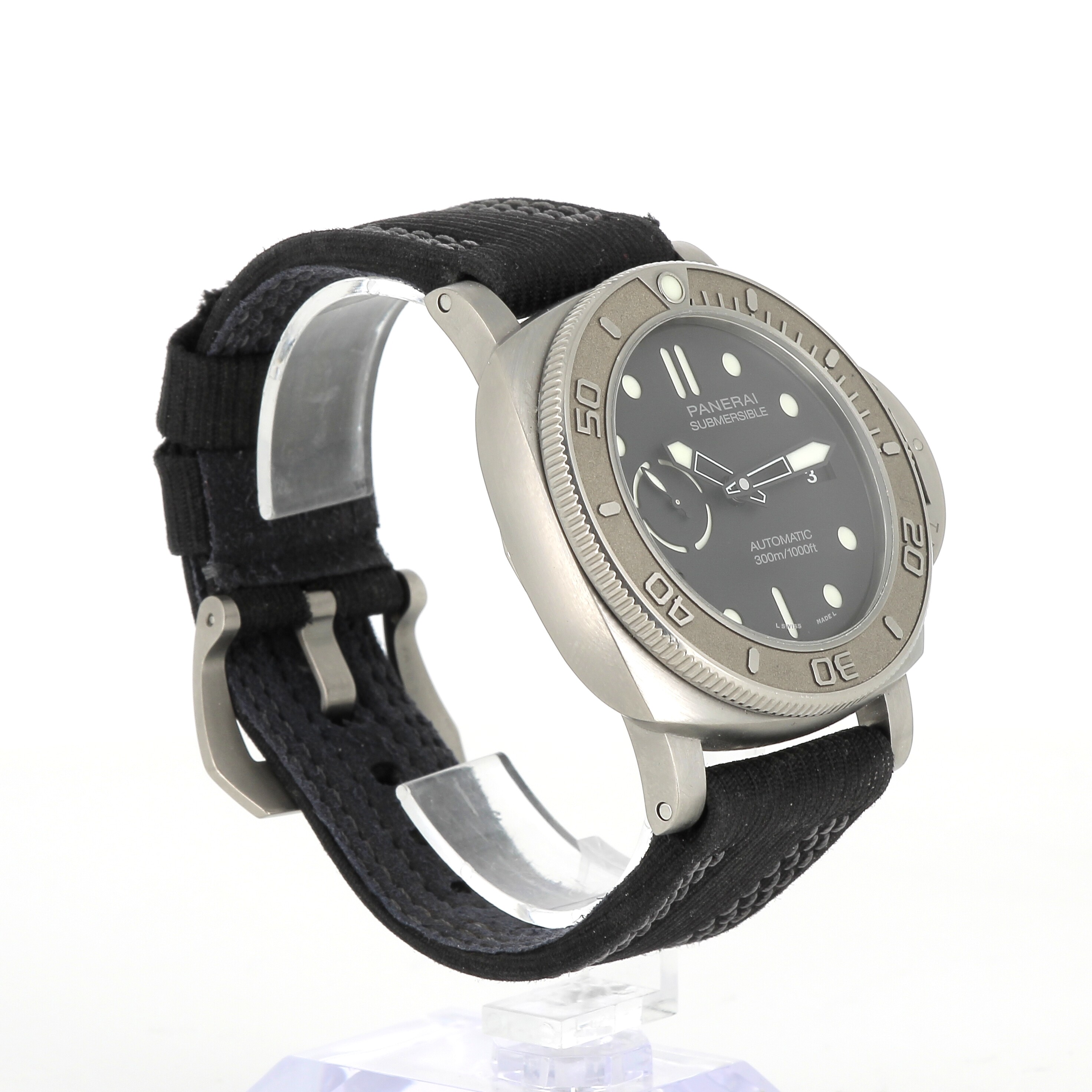 Editée à seulement 500 exemplaires, cette Submersible à l’identité sportive très marquée incarne ce côté classique propre à Panerai et possède également de nombreuses qualités techniques innovantes développées dans notre Manufacture de Haute Horlogerie Panerai de Neuchâtel, en Suisse. Il s'agit d’une montre de plongée professionnelle étanche jusqu’à une pression de 30 bars (environ 300 mètres de profondeur).