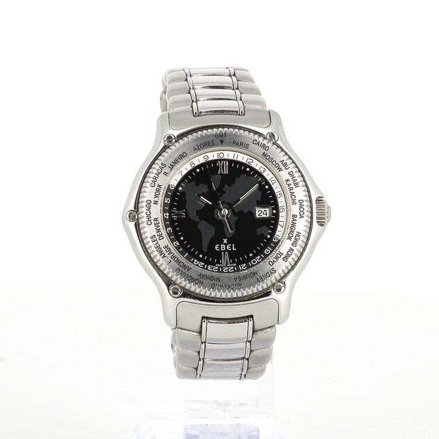 La EBEL Voyager World Time est une montre mécanique automatique suisse (produite surtout dans les années 1990) destinée aux voyageurs et amateurs de montres à complications pratiques. Elle combine un style classique avec un mécanisme de suivi de multiples fuseaux horaires, ce qui en fait une pièce à la fois élégante et fonctionnelle.
